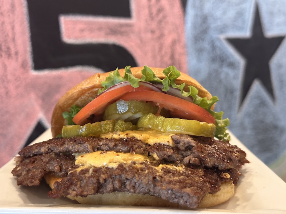 The Gooey Louie — Two ¼-pound smashed patties, 50/50 beef-and-bacon blend, topped with plenty of gooey pub cheddar.